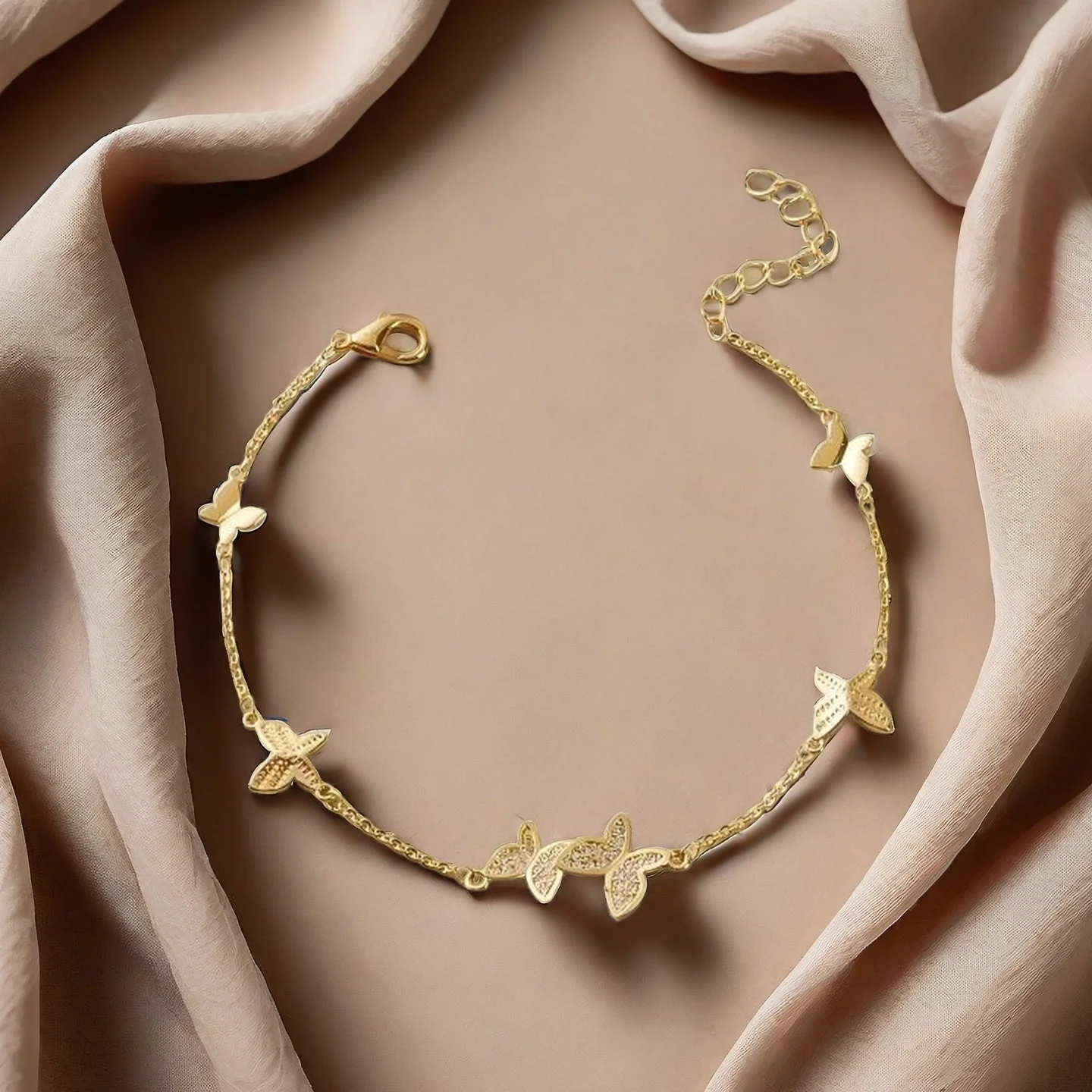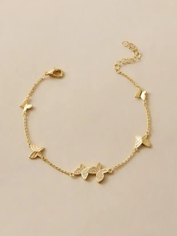 Gold Plated Copper Alloy Jewelry Fancy Jewellery for Ladies Women Butterfly Bracelet Pour Femme Fashion Chain & Link Bracelets